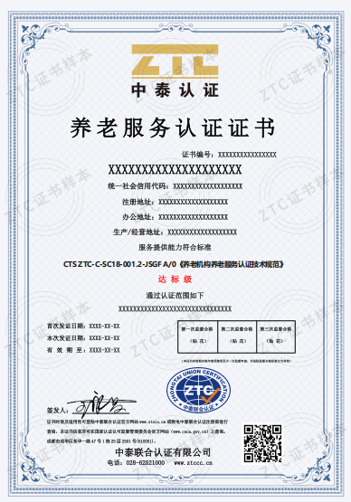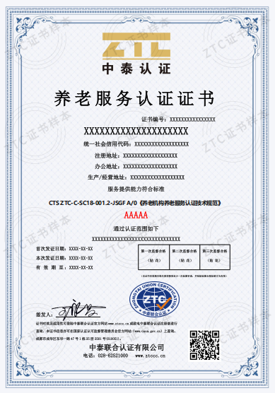 認(rèn)證標(biāo)準(zhǔn)2:CTS ZTC-C-SC18-001.2-JSGF A/0《養(yǎng)老機(jī)構(gòu)養(yǎng)老服務(wù)認(rèn)證技術(shù)規(guī)范》