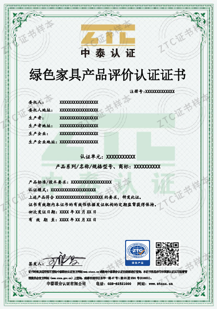 ZTC-B005 C/0 《綠色產品評價認證實施規則-家具》
