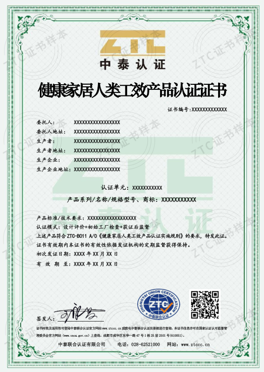 認(rèn)證規(guī)則:ZTC-B011 A/0《健康家居人類工效產(chǎn)品認(rèn)證實(shí)施規(guī)則》