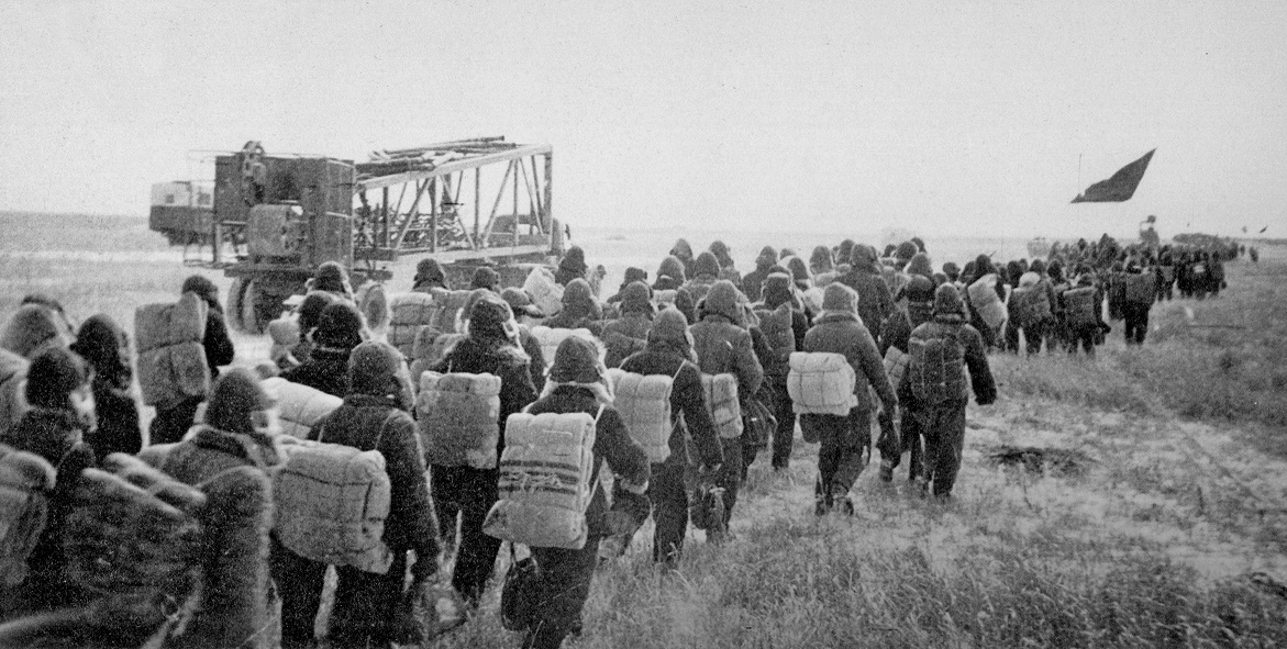 1960年,全國(guó)抽調(diào)幾千名科技人員和上萬(wàn)名職工會(huì)集大慶,參加石油大會(huì)戰(zhàn)。圖為會(huì)戰(zhàn)隊(duì)伍向大慶地區(qū)挺進(jìn)