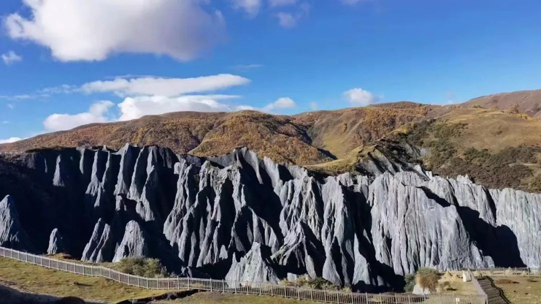 前往網紅打卡地——八美【墨石公園景區】體驗異域風情,步入墨石公園,傳說當年格薩爾王王妃珠姆在此游玩之時,不小心掉下一條絲巾,落在這片格薩爾王戰斗過的土地上,變成了卡瑪河,滋潤著這片石林及當地的人們。石林含鈣鹽,受空氣濕度的影響,干燥季節呈淺灰色、淺藍色,濕潤季節呈蒼黑6 / 12色,又稱之為變色石林。
