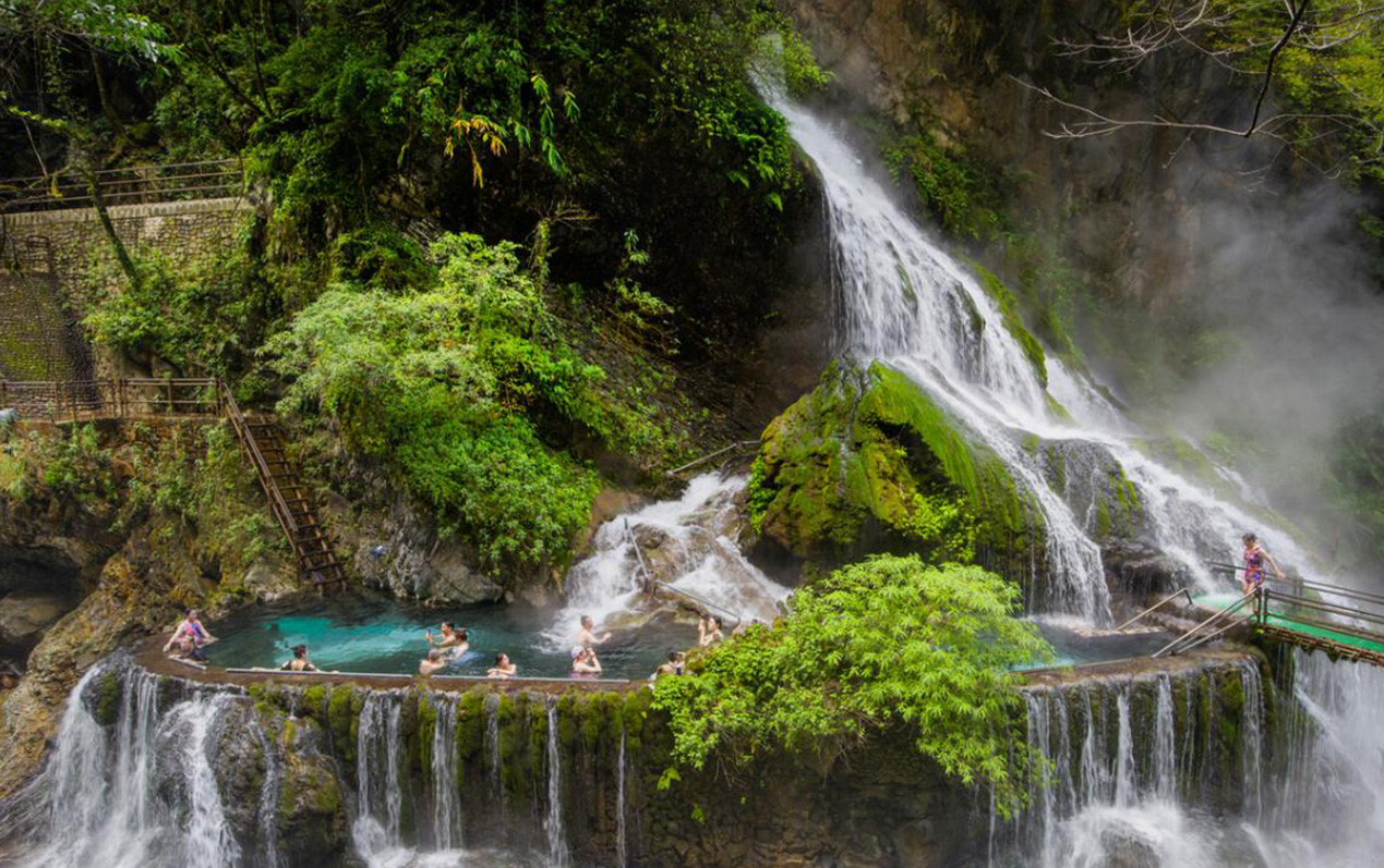 螺髻九十九里(別稱:螺髻九十九里旅游景區、螺髻九十九里瀑布、大漕河瀑布),位于四川省涼山彝族自治州普格縣喬窩鎮,是螺髻山核心景區。還有著保存完整的第四紀冰川遺跡。螺髻九十九里景區最高峰海拔4359米,面積約8平方公里。由百瀑谷、螺髻第一峰、云端之上、原始森林四大景觀群組成;距離以西昌市南約45千米,集觀賞、娛樂、養生于一體,是難溫泉浴場,其水溫常年保持39℃,泉水無色、透明、無味。螺髻九十九里2013年被世界紀錄協會認定為“世界最大溫泉瀑布”,被國家旅游協會評定為“最美溫泉旅游景區”,是國家4A級風景區。